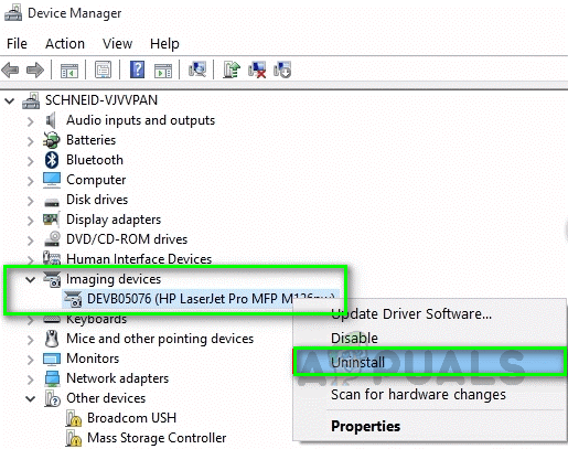 - Right-click on your Scanner and click uninstall to remove the driver and restart your computer.