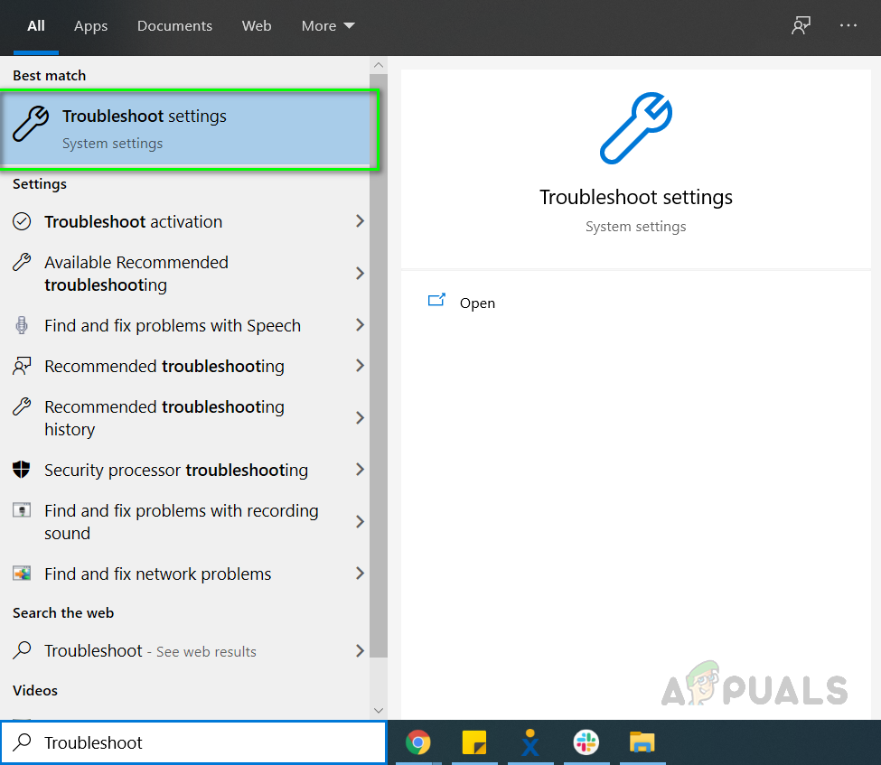 - In the Windows search bar type “Troubleshoot” and click on the “Troubleshoot Settings” to open it.