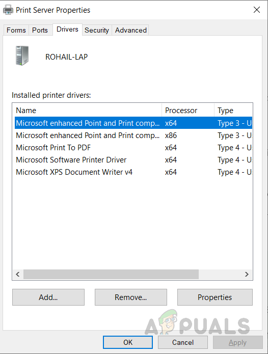 Type printui.exe /s in the Run menu - Click on the Drivers tab and search for your Printer/Scanner Driver and if you find it click on it and then click Remove at the bottom