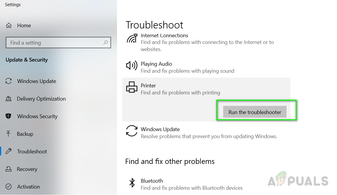 Search Troubleshoot in Windows Search bar - Find the printer option and click on “Run the troubleshooter”.