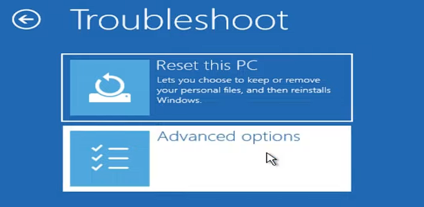 - Choose Troubleshoot > Advanced options.