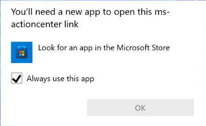 Fix: You’ll need a new app to open this ms actioncenter link