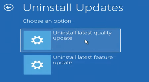 - Select Uninstall Updates > Uninstall latest quality update.
