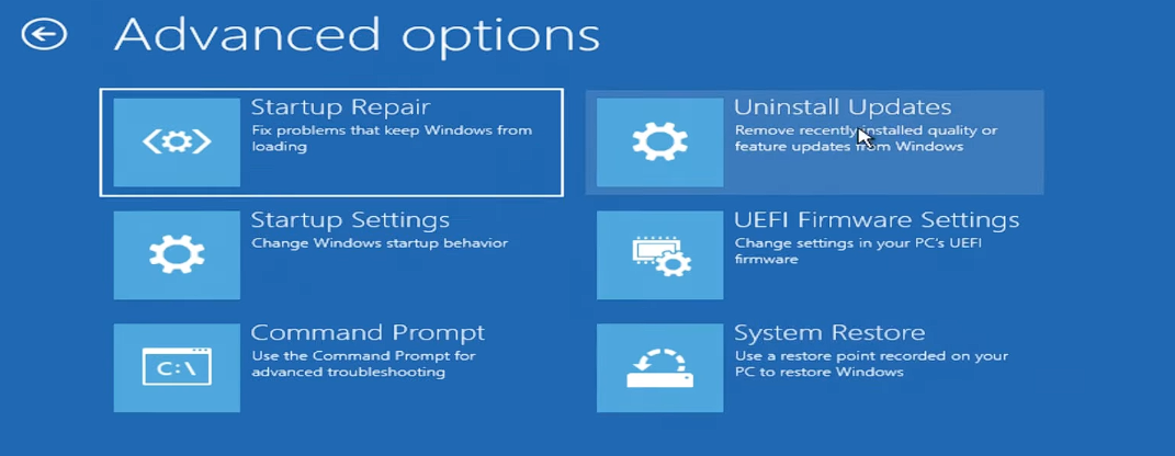 - If that option is not available, use Advanced Startup: