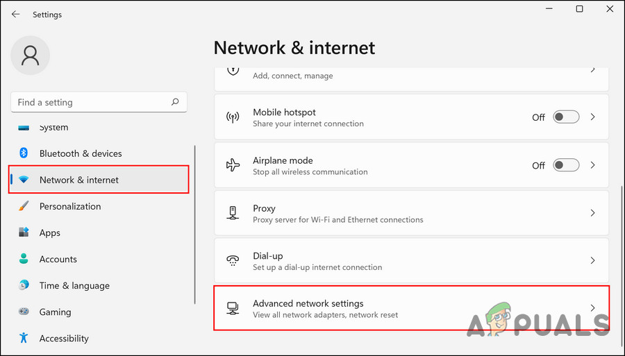- In the Settings window, click on Network & internet > Advanced network settings.