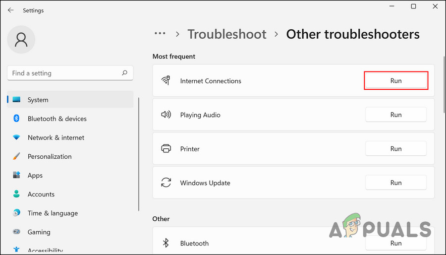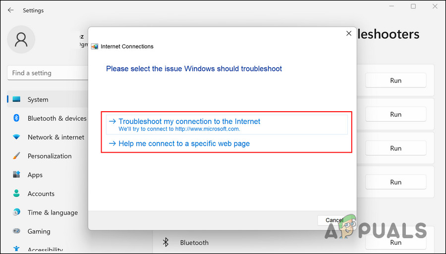 If this scenario is applicable, you can run the Internet connection troubleshooter to look for potential issues. It has been designed by Microsoft itself, and you can find it in the Settings app of Windows.