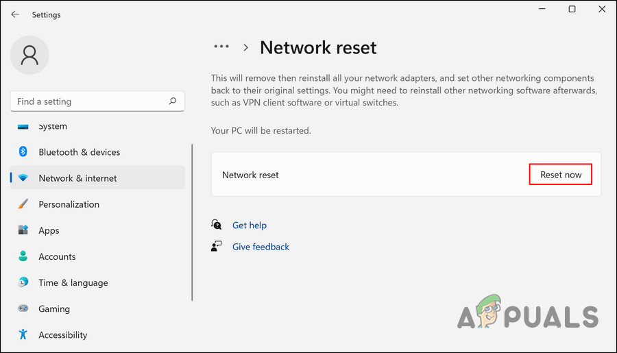- Click Reset now and wait for the process to complete. Once done, check if the problem is solved.