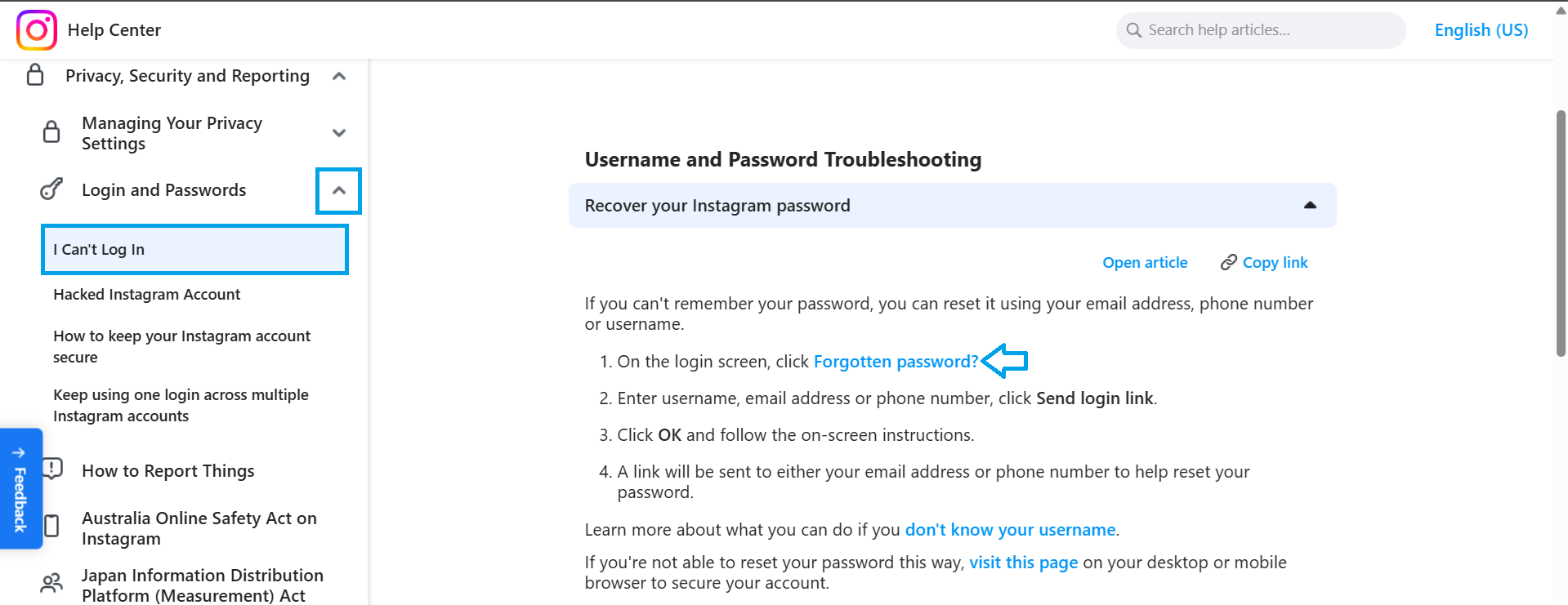 - Go to Instagram’s login page and click on Forgot password?.