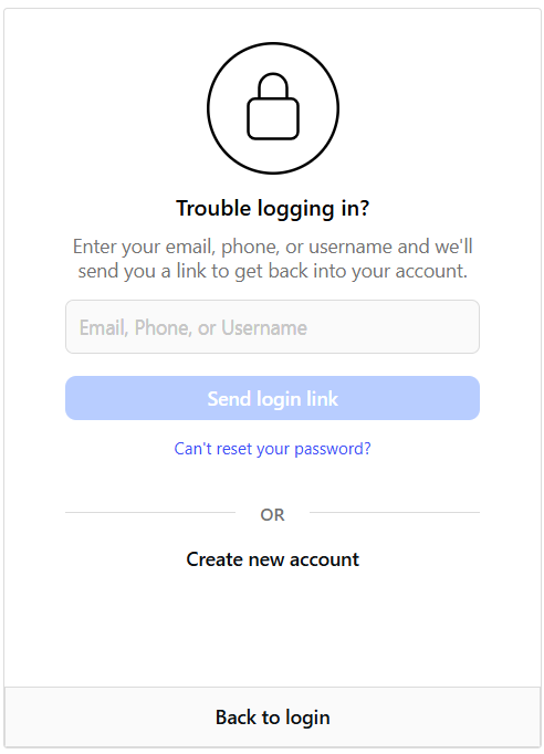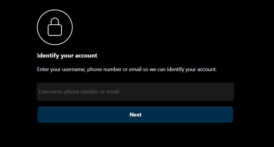 - Enter your username, phone number or email to identify your account.