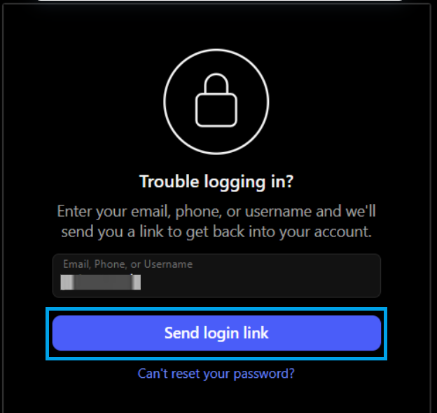 - After that enter your Email, phone number or username and click on Send login link.