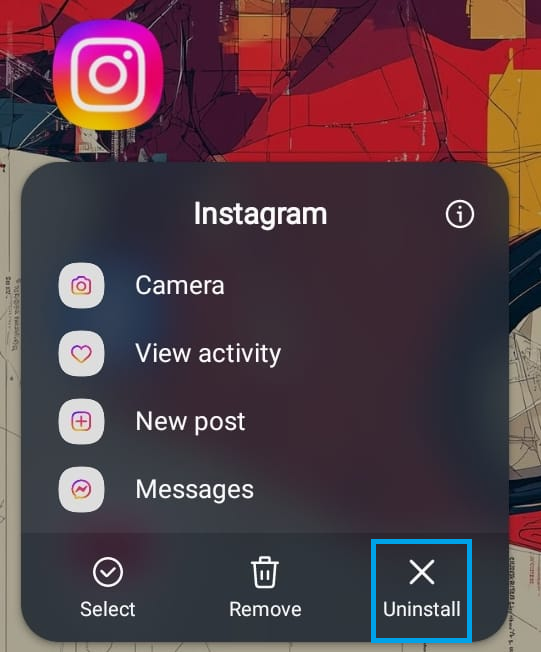 - Hold Instagram’s icon and click on Uninstall.