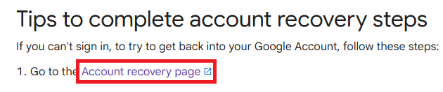- Go to Google’s official account recovery service.