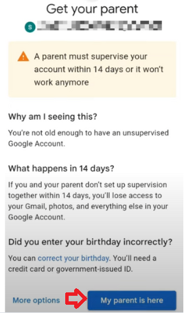 - Click on “My parent is here” to proceed.
