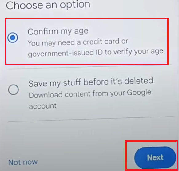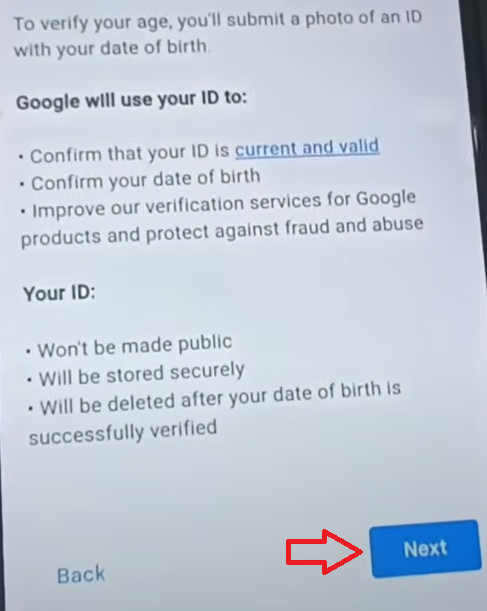 - Click on the “Use a valid ID” option to verify your age (you can also use a credit card if available – Google may place a small temporary transaction to verify).