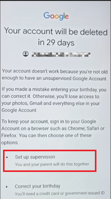“Your account will be deleted in 29 days” Google account issue usually occurs when Google suspects that the account owner is under the minimum age required to create an account. In most regions, the minimum age requirement is 13 years old (higher in some regions such as the EU).