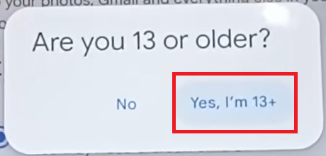 - Click on “Yes, I’m 13+” when prompted.