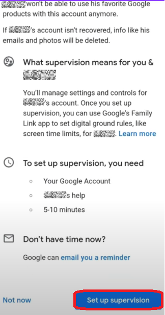 If you do not have access to a valid ID or cannot set up supervision, visit the Google Account Help Center to contact Google Support for further assistance.