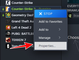 - In Steam Library, right-click Counter-Strike 2 → Properties.