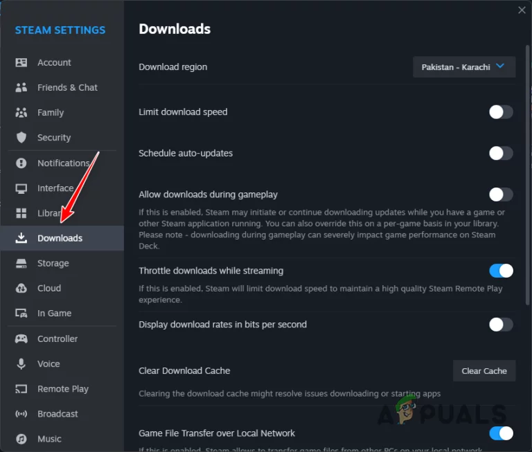 A corrupted download cache can prevent patches from applying. Clearing it removes temporary download data and forces Steam to fetch a fresh update package for CS2.