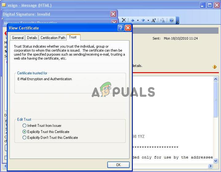 Click the Explicitly Trust this Certificate option - Click OK for saving the setting and close