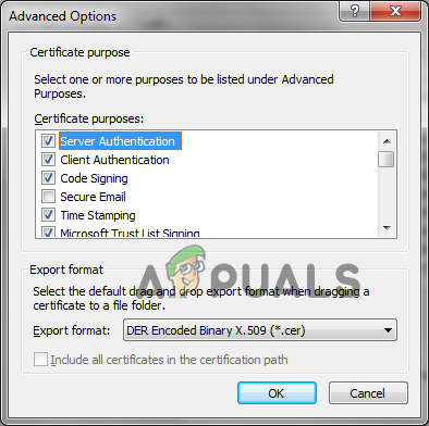 - Click on the Advanced option and under Certificate Purpose look for the Client Authentication & Secure Email option