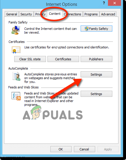 Click on the Content tab - From here you need to click the Certificates, next on Personal