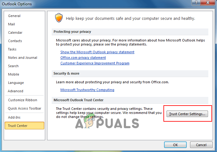 Click on Trust Center - Next click on the Trust Center Settings and Email Security option