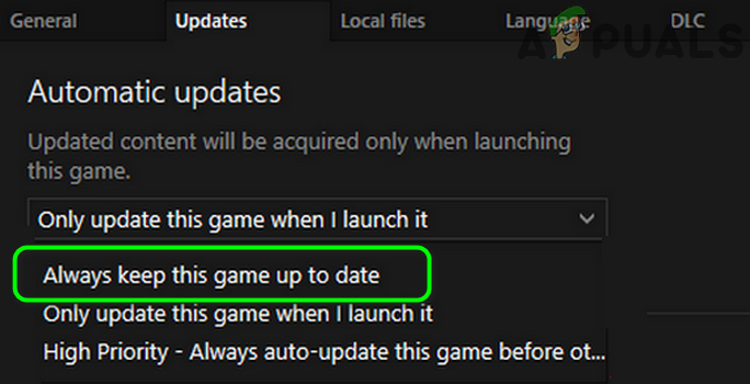 - Then navigate to the Updates tab and under Automatic Updates, make sure Always keep this game up to date is selected. If you got an “update is queued” message for the game, then follow it to update the game.
