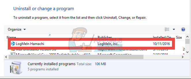 - Locate Hamachi in Control Panel or Settings and click on Uninstall.