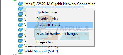 - Expand the node next to Network adapters, right-click the on the entry which should be named similar to the program which installed it (Hamachi for example). If you are not sure, perform a Google search for each of the devices you see under the Network adapters section and conclude just which one you should uninstall by right-clicking on it and selecting the Uninstall device option.