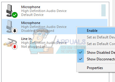 - Check to see if your devices are enabled under the Playback and Recording tabs. If you notice that they are disabled, right-click on them and choose the enable option.