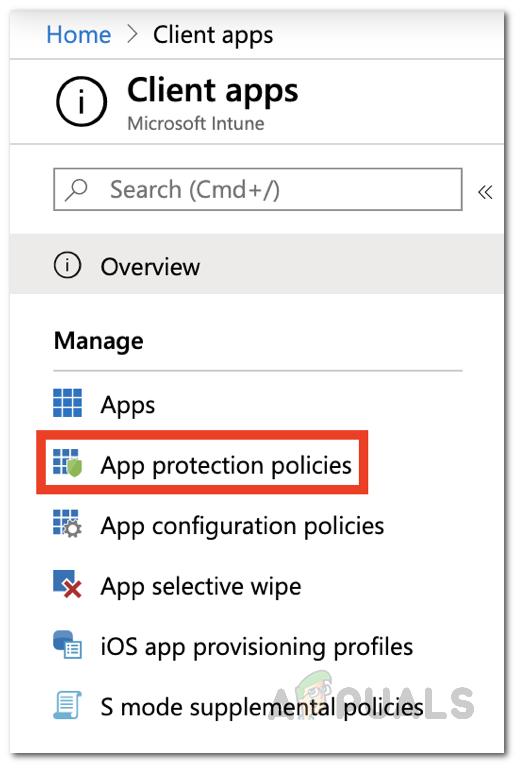 Microsoft Intune Dashboard - On the Client apps screen, from the left-hand pane, go to App protection policies.