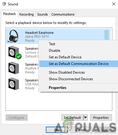 - If not, then check if setting the headset as the default communication device solves the issue.