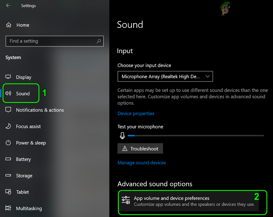 - Hit the Windows key and choose Settings. Then open System and in the left half of the window, select Sound.