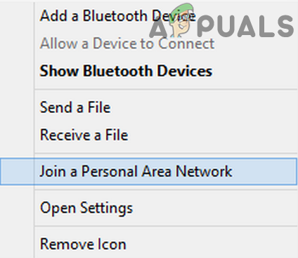- Click on the Bluetooth icon in the system’s tray and choose to Join a Personal Area Network.