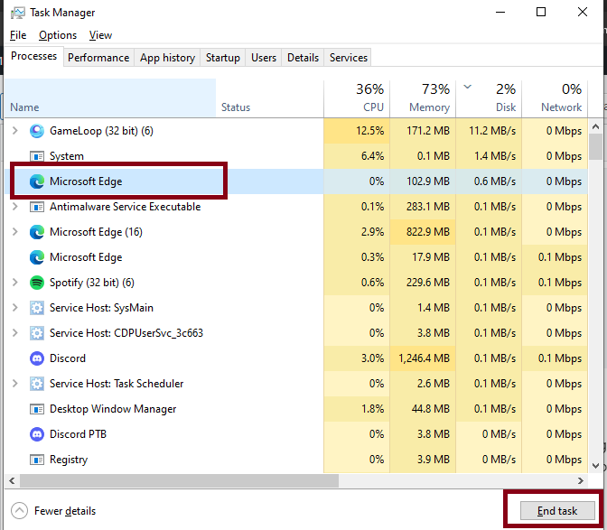 - Select any unnecessary app and click on End Task.