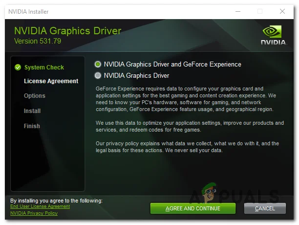 - Select NVIDIA Graphics Driver and GeForce Experience and press Agree and Continue.