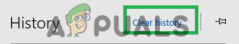 Clicking on history - Select the “Clear History” button on the top of the pane.