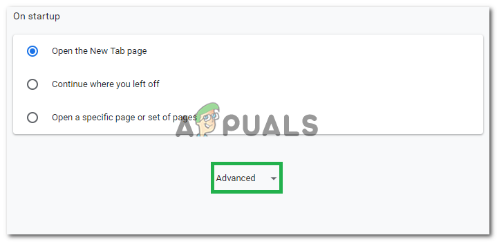 Clicking on “Settings” from the drop-down. - Scroll down and click on “Advanced“.