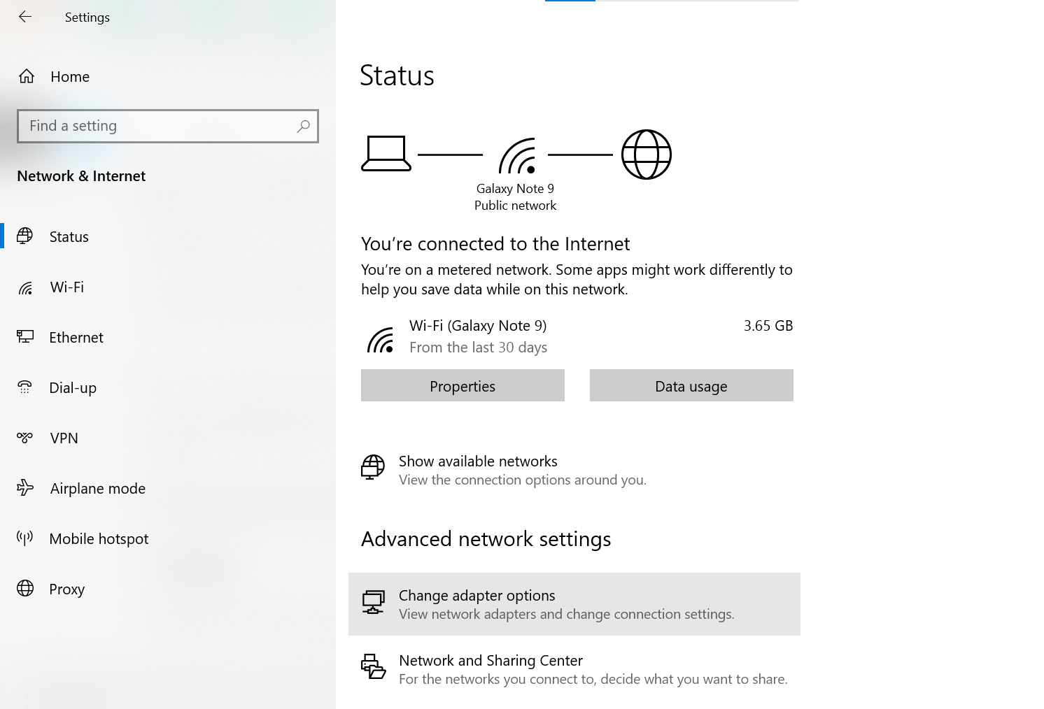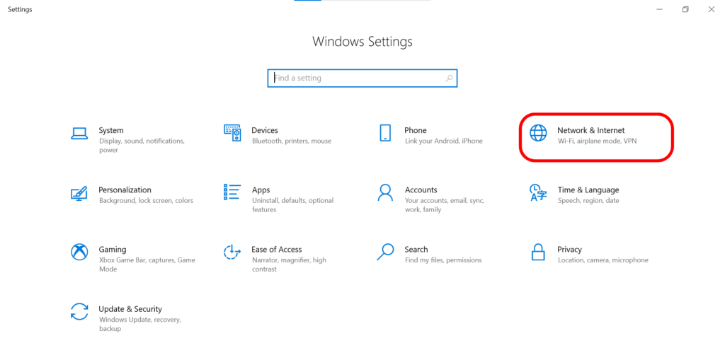 First, open the Windows settings (Windows key + I) and navigate to the Network and Internet section.