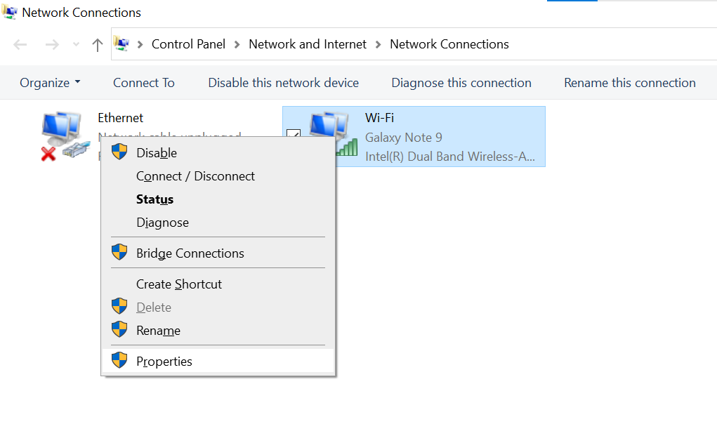 Third, choose “Properties” by right-clicking the connected network (Wi-Fi or LAN).
