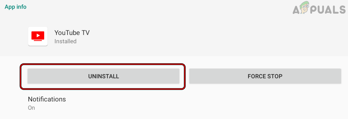 YouTube TV might also pop this error if the installation of the YouTube TV has gone corrupt and is failing to access its essential modules. In this scenario, reinstalling the YouTube TV app may solve the problem. For illustration, we will discuss the process for an Android TV.