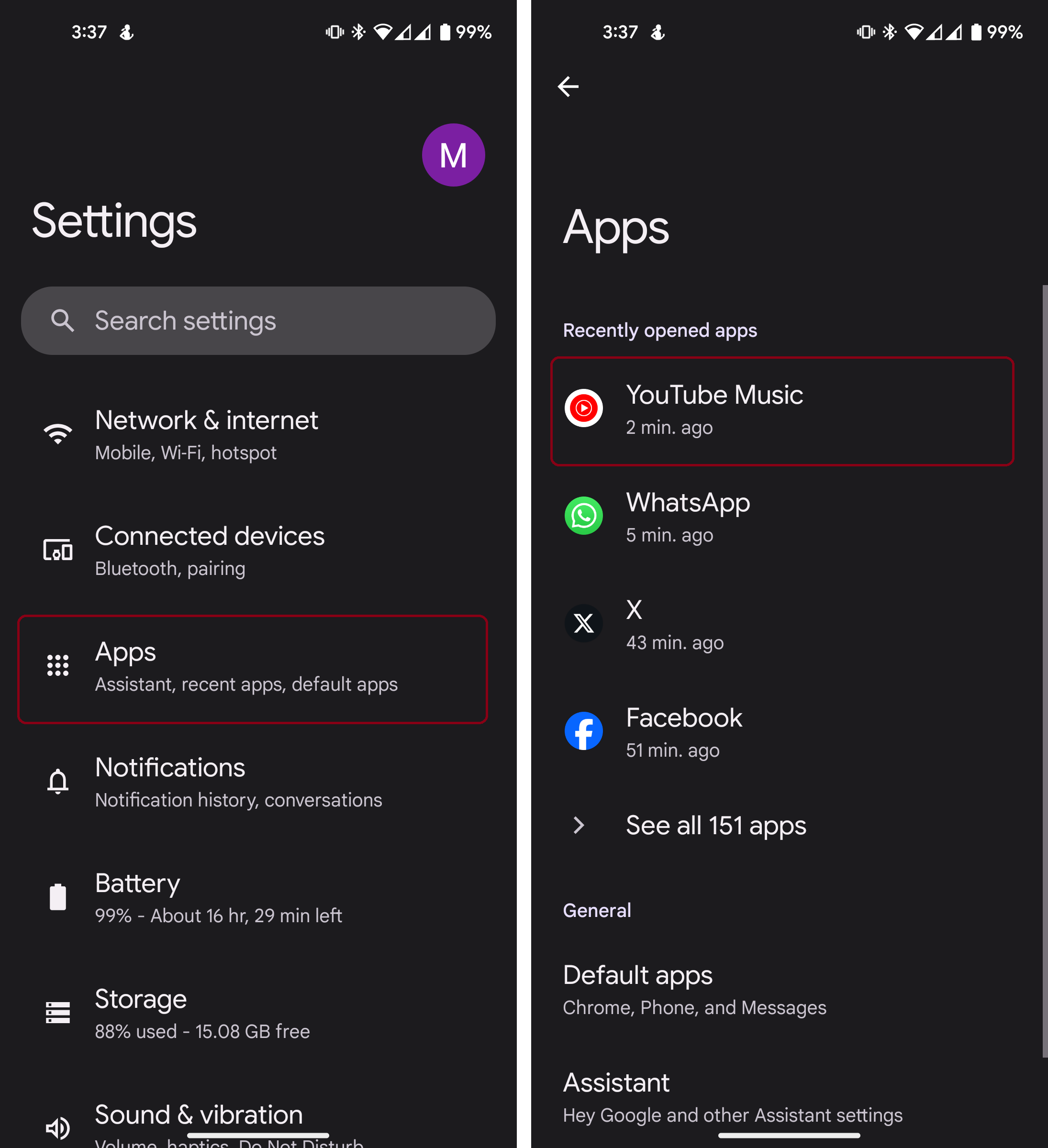 - Open your phone’s Settings and go to Apps. Find and tap on YouTube Music.