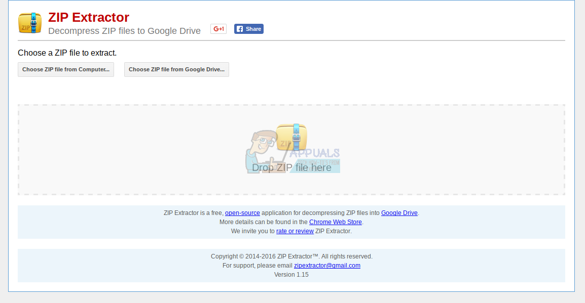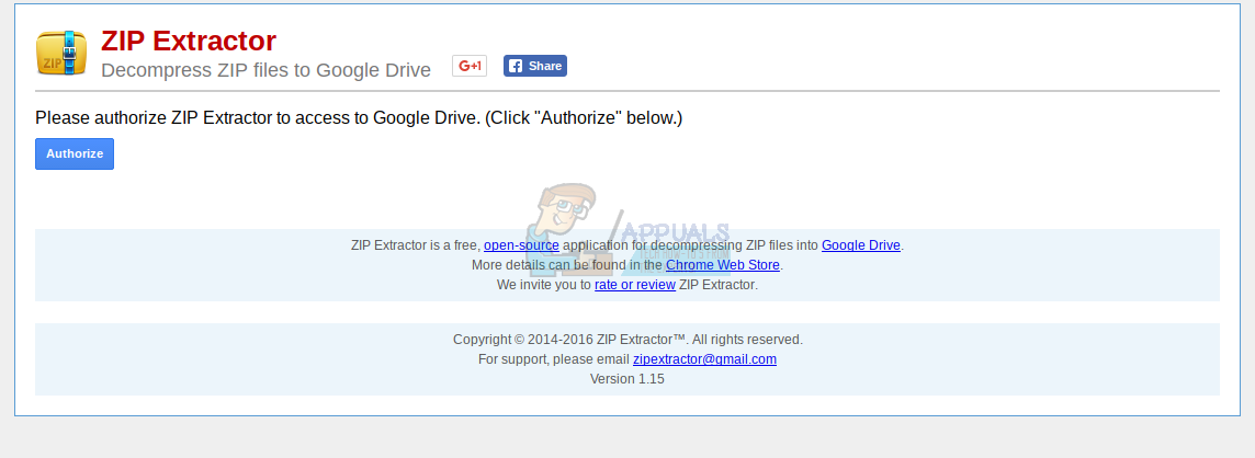 Zip Extractor is an online tool that can unzip files stored in Google Drive or from your Downloads folder. You will have to authorize the tool to access your Google Drive by clicking the blue ‘Authorize’ button. For some reason, you have to authorize access to Google Drive even if you want to unzip a file from your local Downloads folder.