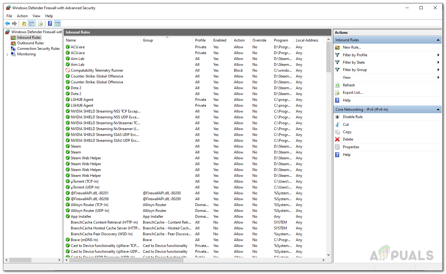 Windows Defender Firewall - On the new window that appears, click on the Inbound Rules option.