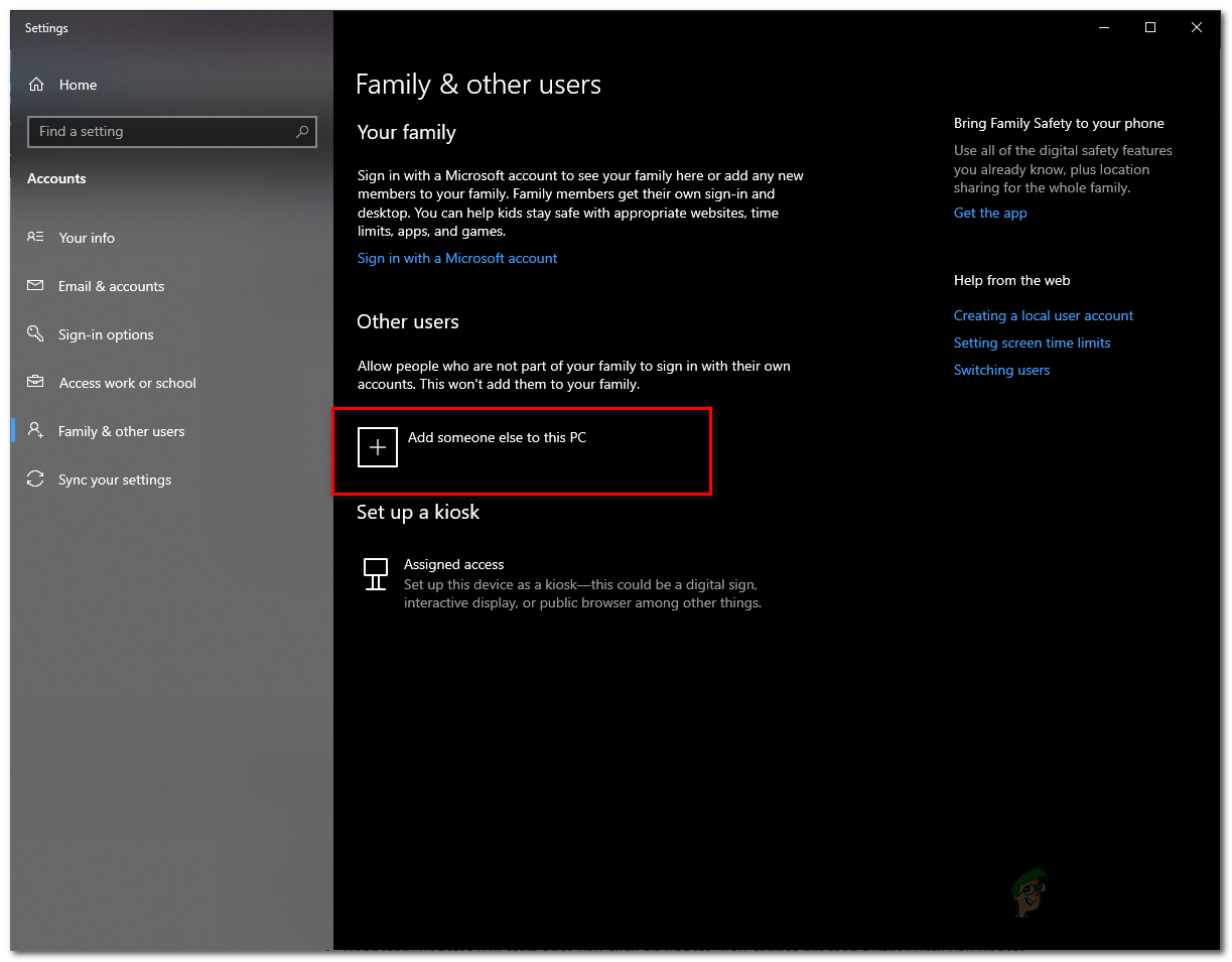- Then, click on the Add a new user in PC Settings option. This will open up the Settings window.