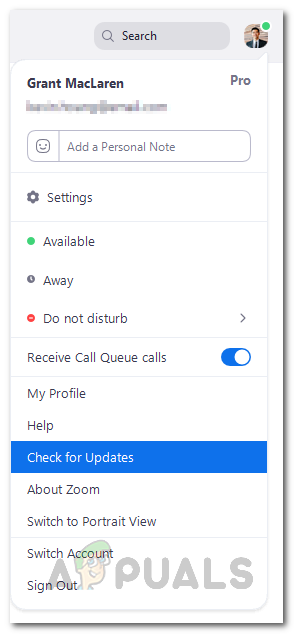 The first thing that you should when you get the error message is to make sure that your Zoom installation is up to date. As we have mentioned above, the issue was caused by a bug in a build of the desktop app which prevented users from joining a meeting. Therefore, you will have to simply update your application and see if that resolves the issue. To do this, follow the instructions down below: