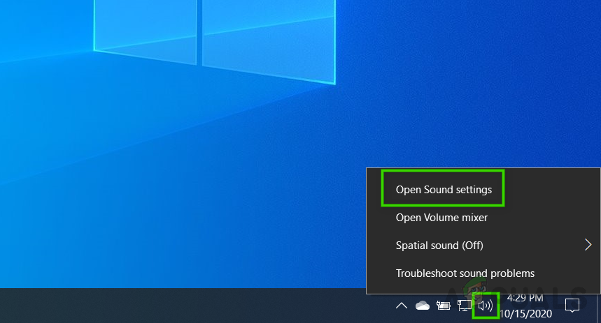 - Right-click on the Speaker icon at the bottom-right corner of your PC’s taskbar and select the Open Sound settings option. This will open a window where all settings for Windows sound reside.