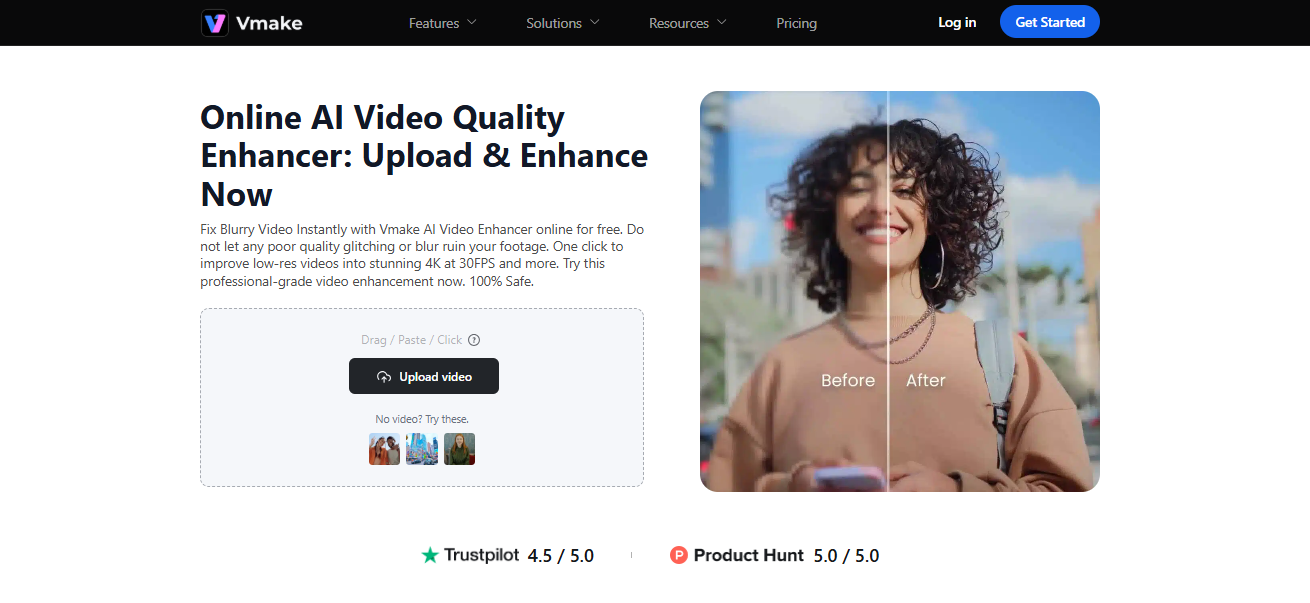 - Midday, Production & Enhancement: You can simply film what you want to say or the screen pieces with your phone. To make the video better, all you need to do is just put the raw footage on Vmake’s AI video enhancer, and the program will automatically perform the operation of adding clarity, lighting, and sharpness, and you won’t have to do anything.