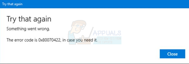 “Something went wrong. The error code is 0x80070422, in case you need it.”